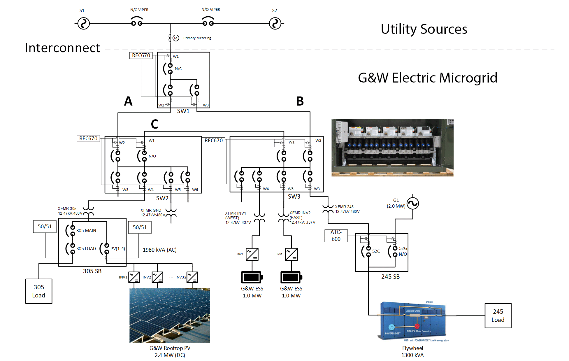 • 基于 Viper 系统的自动切换 (ATO) 可在不到 10 秒的时间内将 G&W Electric 园区的电源切换到备用架空电源。